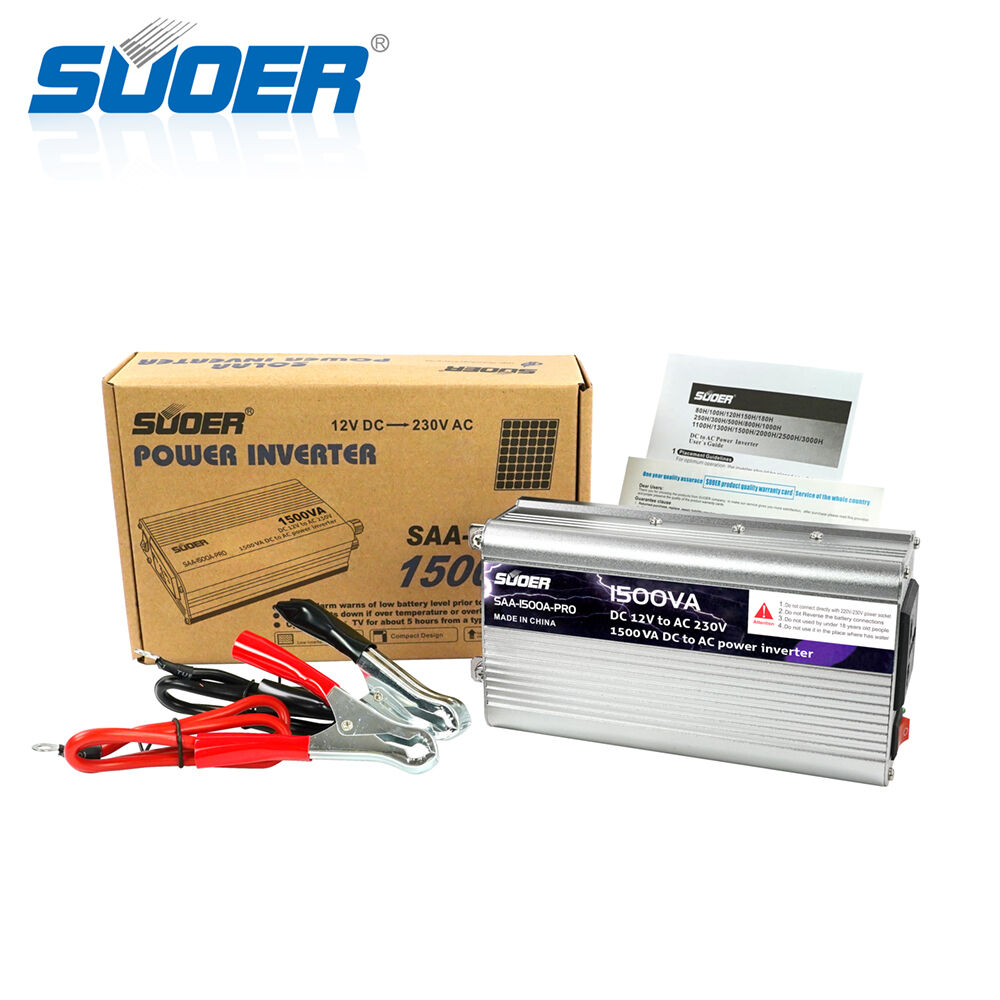 Onduleur à onde sinusoïdale modifiée SAA-1500A pour usage domestique Suoer, courant continu vers courant alternatif, 1500 watts, 12 V vers 220 V, monophasé, 1500 W, onduleur de puissance, courant continu 5 V, 1 A, 0,8